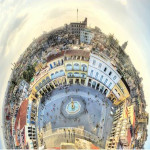 Plaza pública diseñada en 1559 con una fuente y edificios de estilo barroco y art nouveau.
